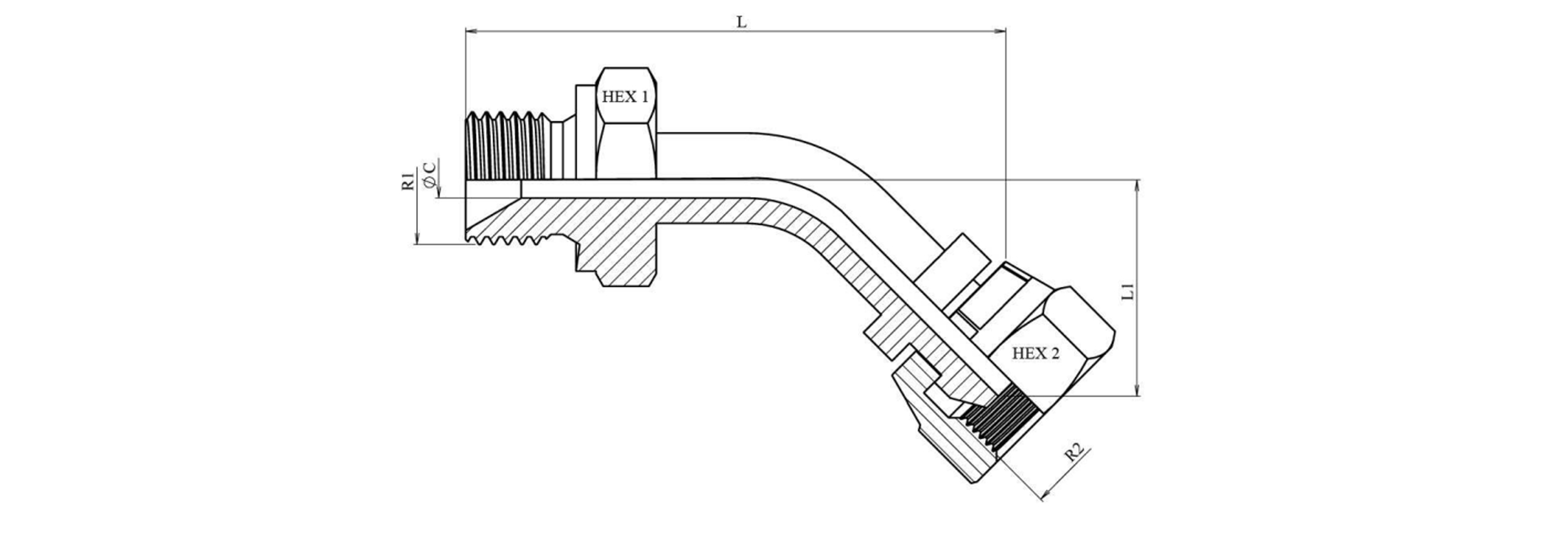 HYDRAULIK KNIE 45° BSP MÄNNLICH-WEIBLICH 3/8
