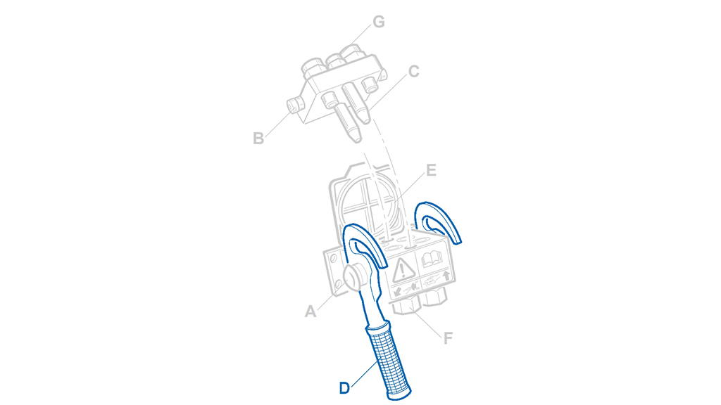 Originalhebel für die Multi-Faster Schnellkupplung, vorgesehen für den festen Teil. Ermöglicht eine schnelle und gleichmäßige Verbindung/Trennung von Hydraulikleitungen und sorgt für eine zuverlässige mechanische Verriegelung in Arbeitsposition. Die ergonomische Form und das robuste Design garantieren eine lange Lebensdauer und einen sicheren Einsatz unter anspruchsvollen Bedingungen.