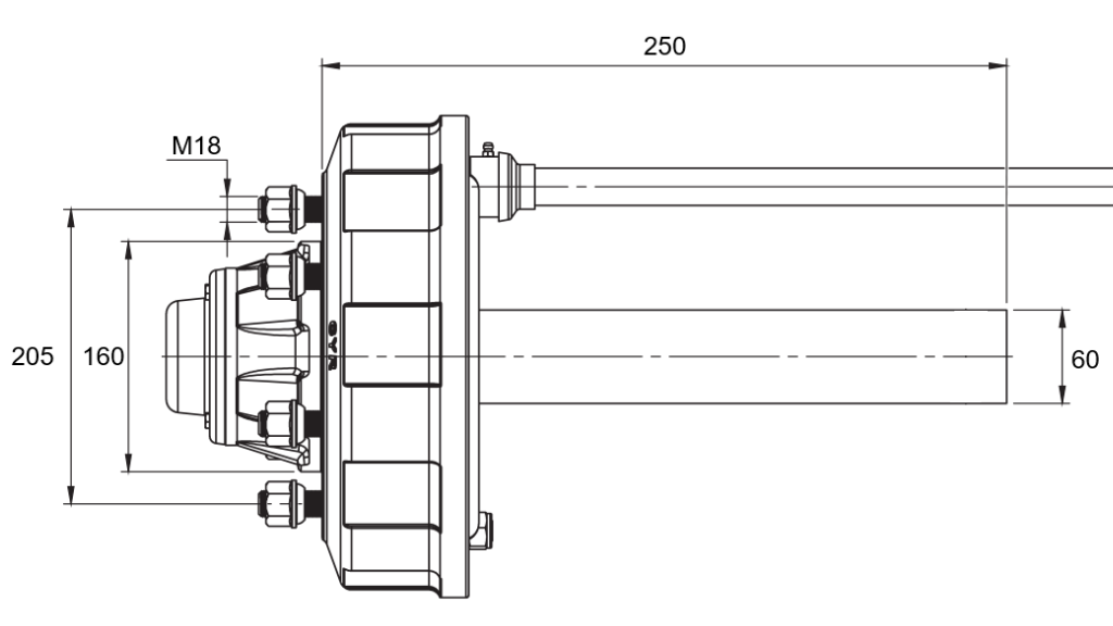 Stubiakseli on tarkoitettu käytettäväksi erilaisissa jarrujärjestelmällisissä perävaunuissa. Stubiakselin pituus on 250 mm ja kantavuus jopa 2700 kg.