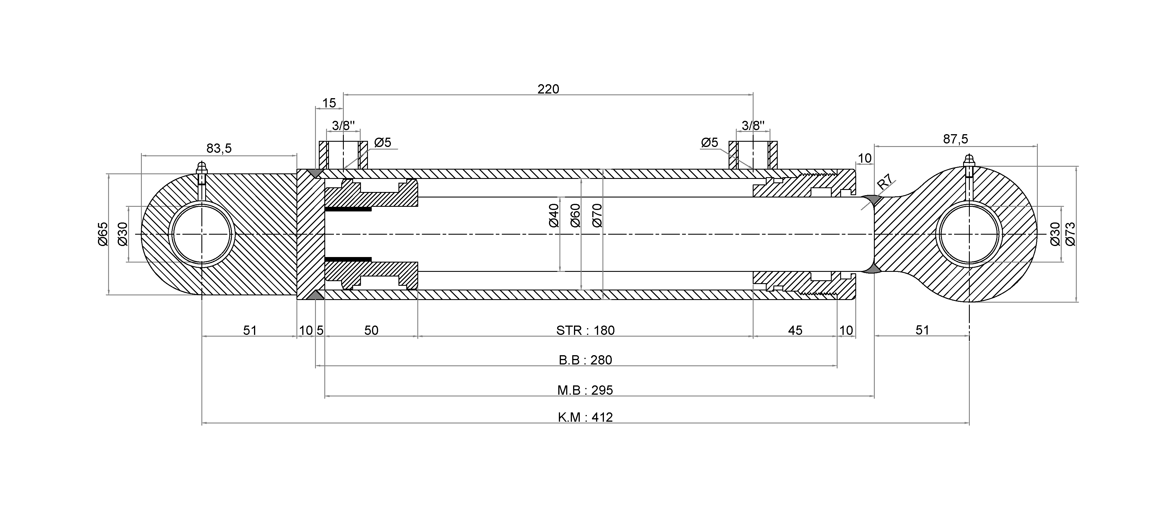 | Zugkraft des Zylinders (bei 180 bar): | 2,83 Tonnen |