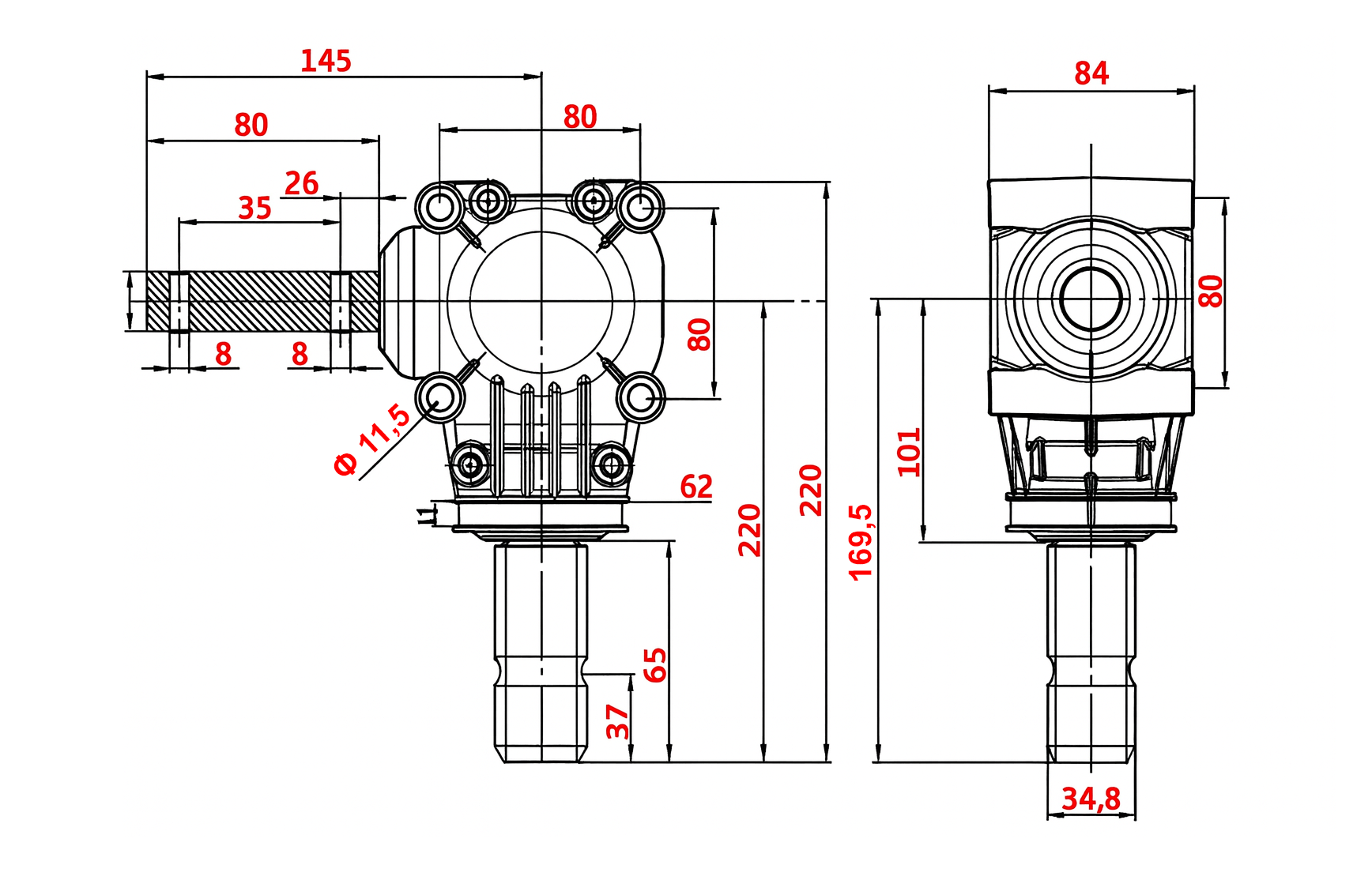 KOTNI REDUKTOR L-150J 1:1 (12HP-9kW)