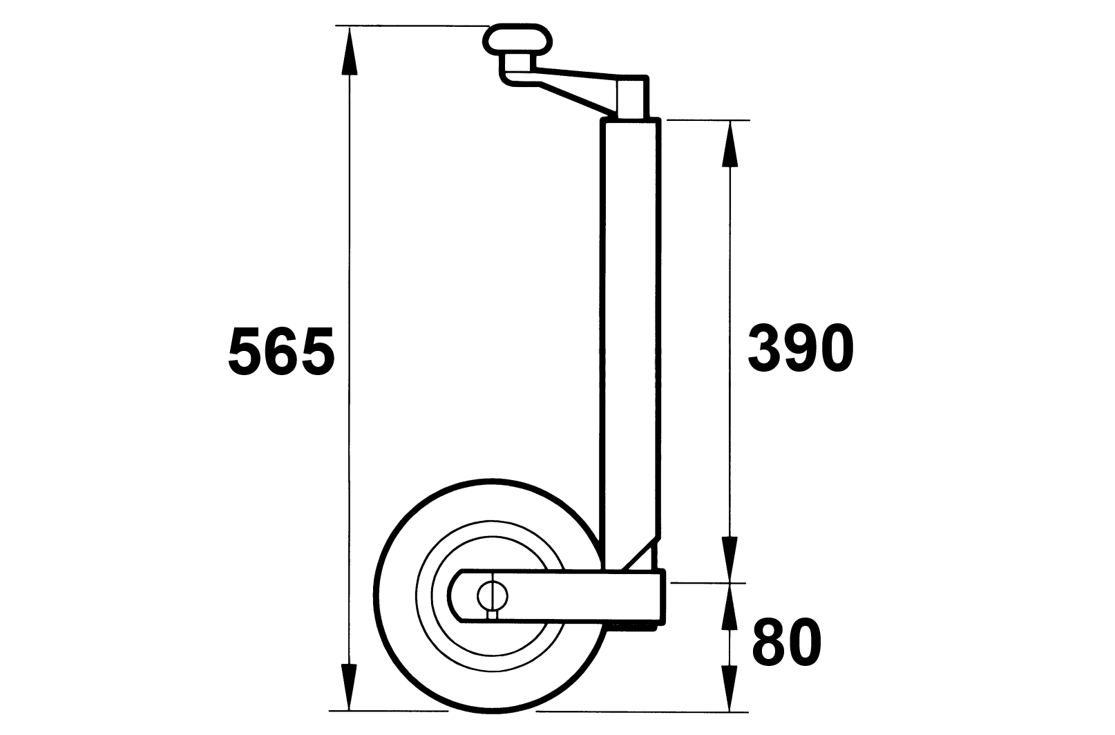 NAVOJNA PODPORNA NOGA S KOLESOM ZA AVTOPRIKOLICE 190mm 75kg