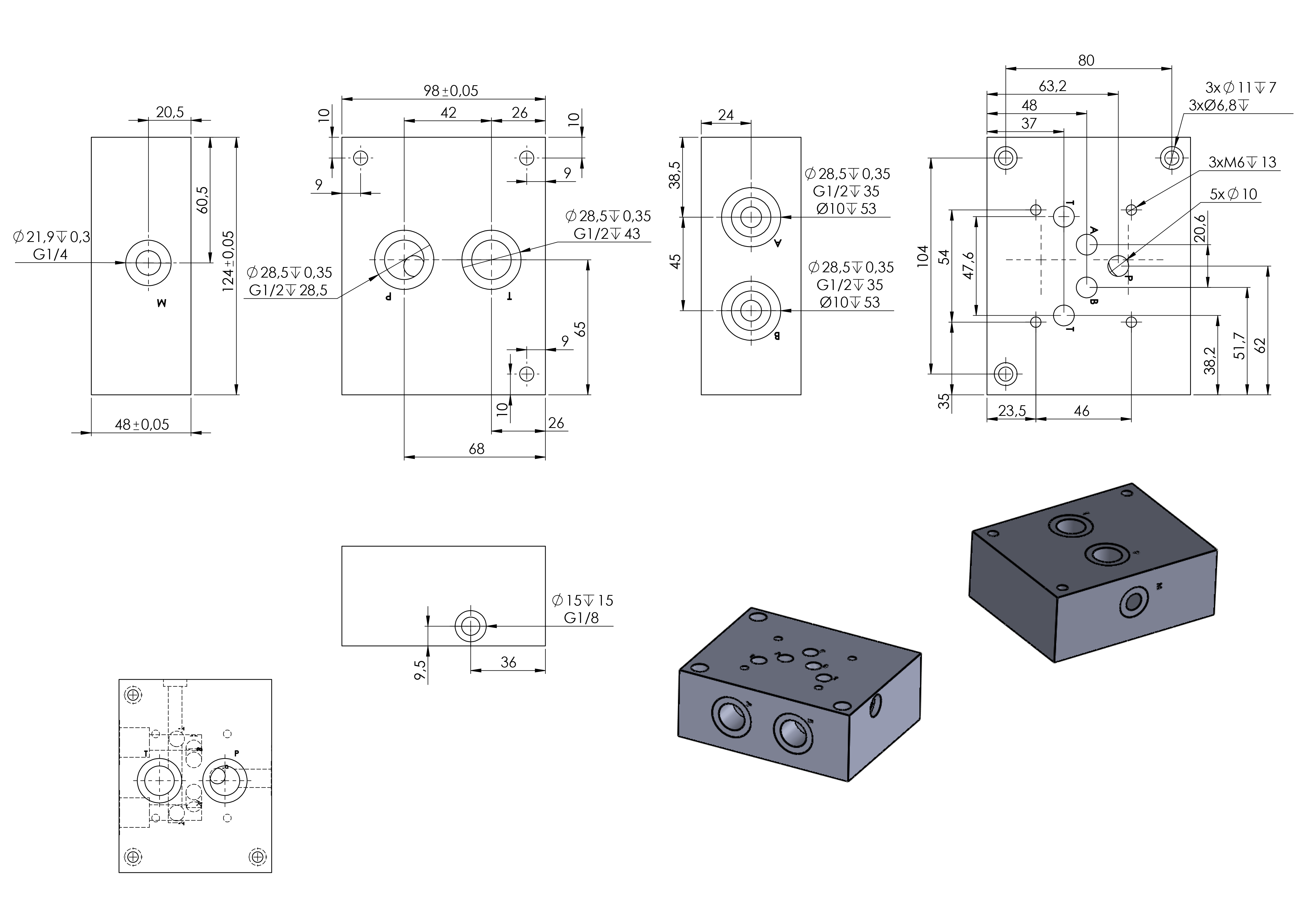 A subplaca CETOP NG10-1 é uma placa de montagem padronizada projetada para a instalação de válvulas hidráulicas tamanho NG10 (CETOP 5) conforme a norma ISO 4401-05. Ela possibilita uma conexão simples, rápida e confiável da válvula ao sistema hidráulico.