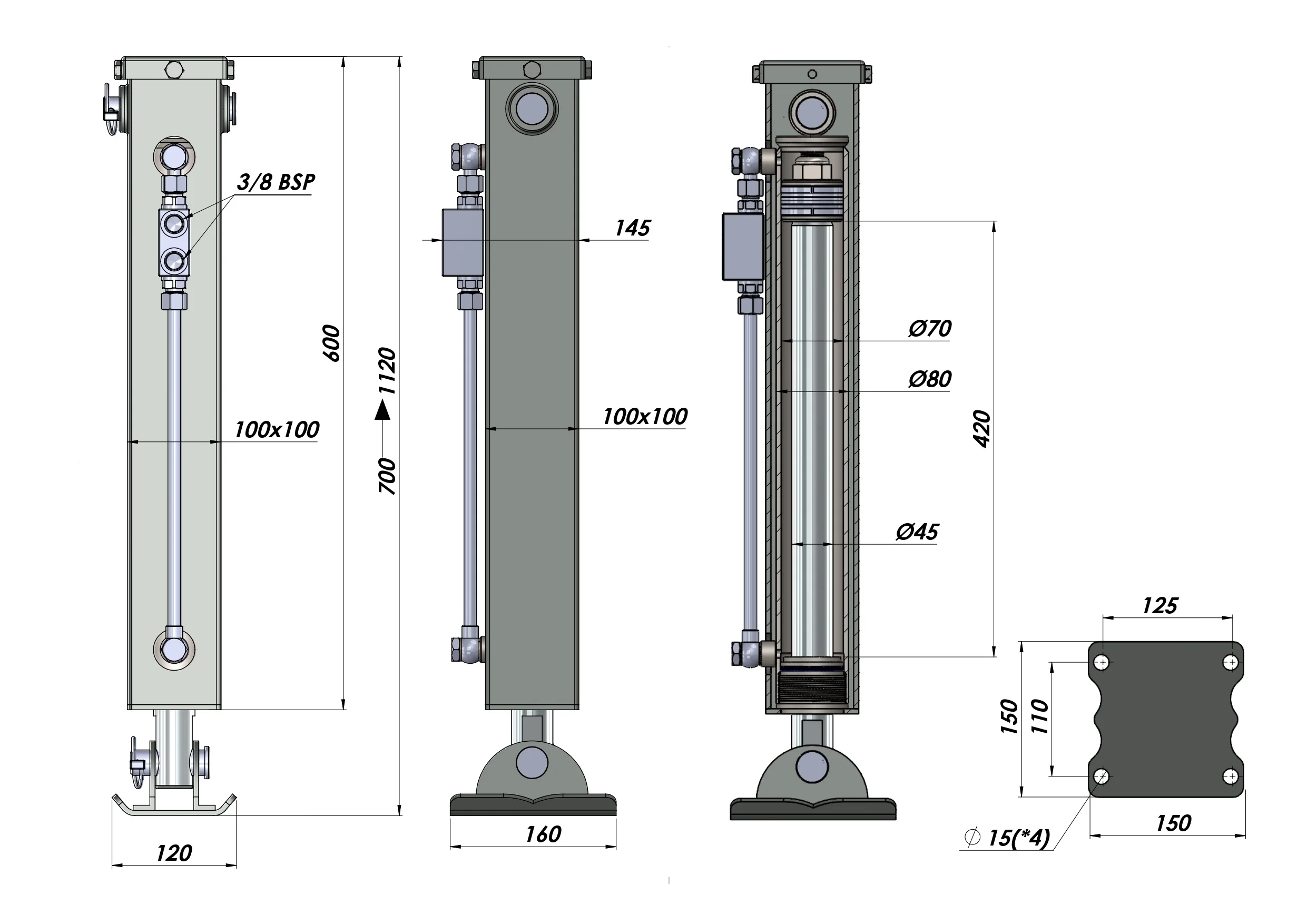 PICIOR DE SPRIJIN HIDRAULIC CU DUBLĂ ACȚIUNE (100x100x700 mm) - CURSĂ 420 mm - 5.000 kg